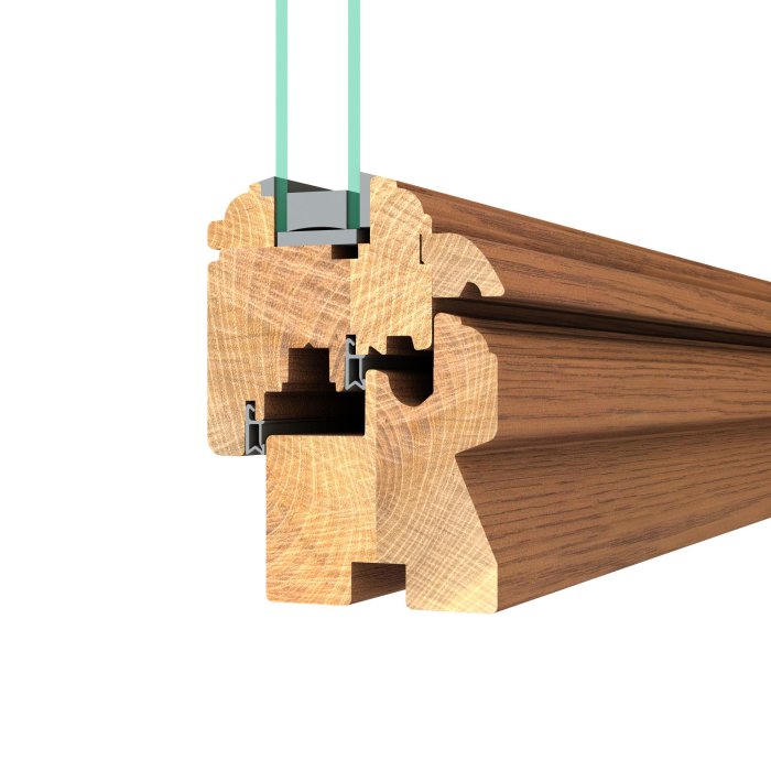 - Uw-waarden tot 0,8 W/(m²K) met standaard glaswerk Ug = 0,5 W/(m²K), in functie van de gekozen combinatie van profiel, glaswerk en houtsoort.